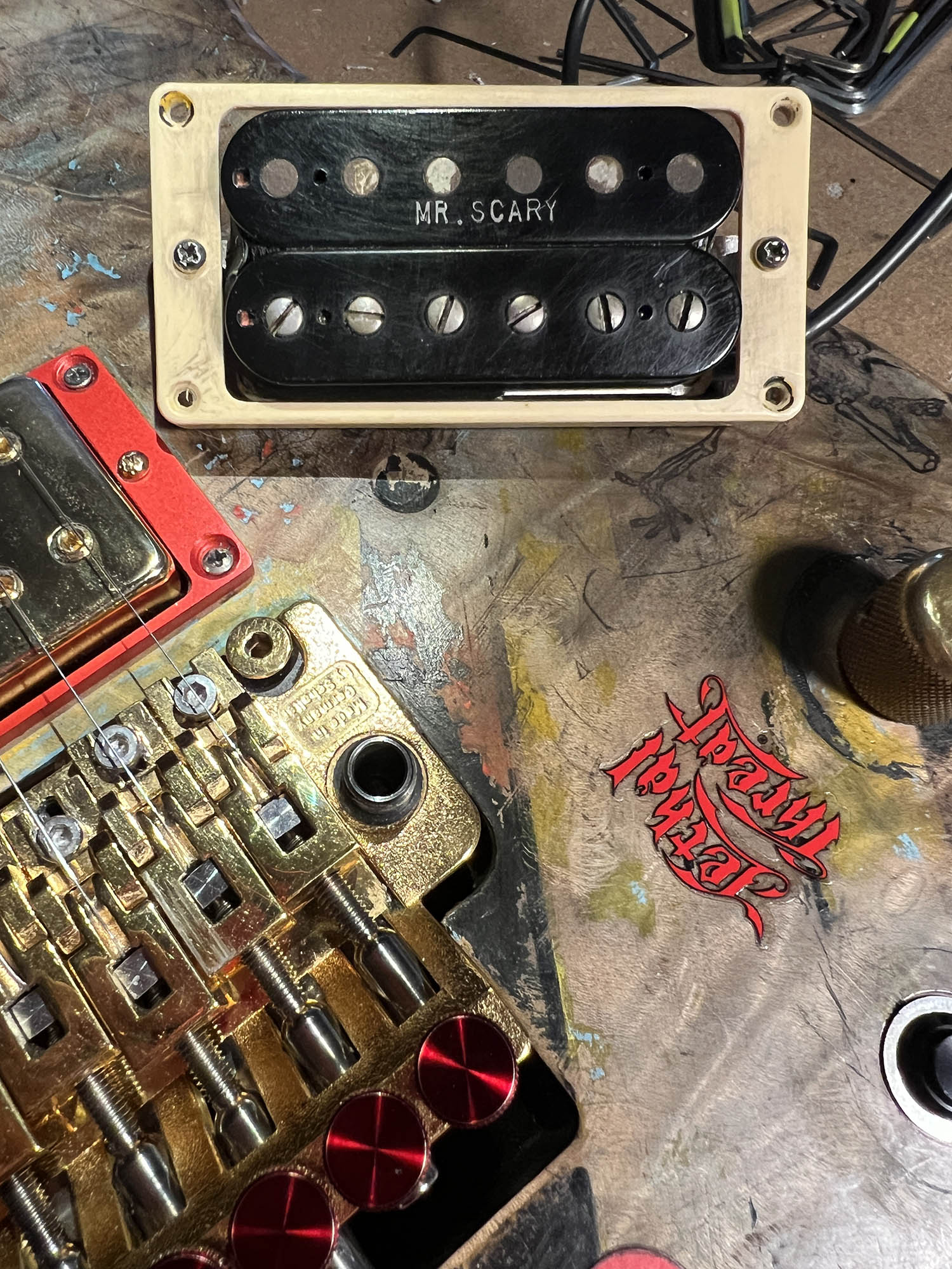 - Arcane Inc. MR. SCARY humbucker in the bridge (custom-wound high-output monster from George Lynch’s line, known for razor-sharp articulation, thick saturation, and harmonic squeals that cut through any mix like a chainsaw)