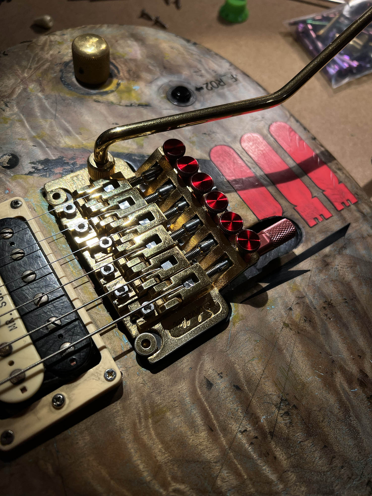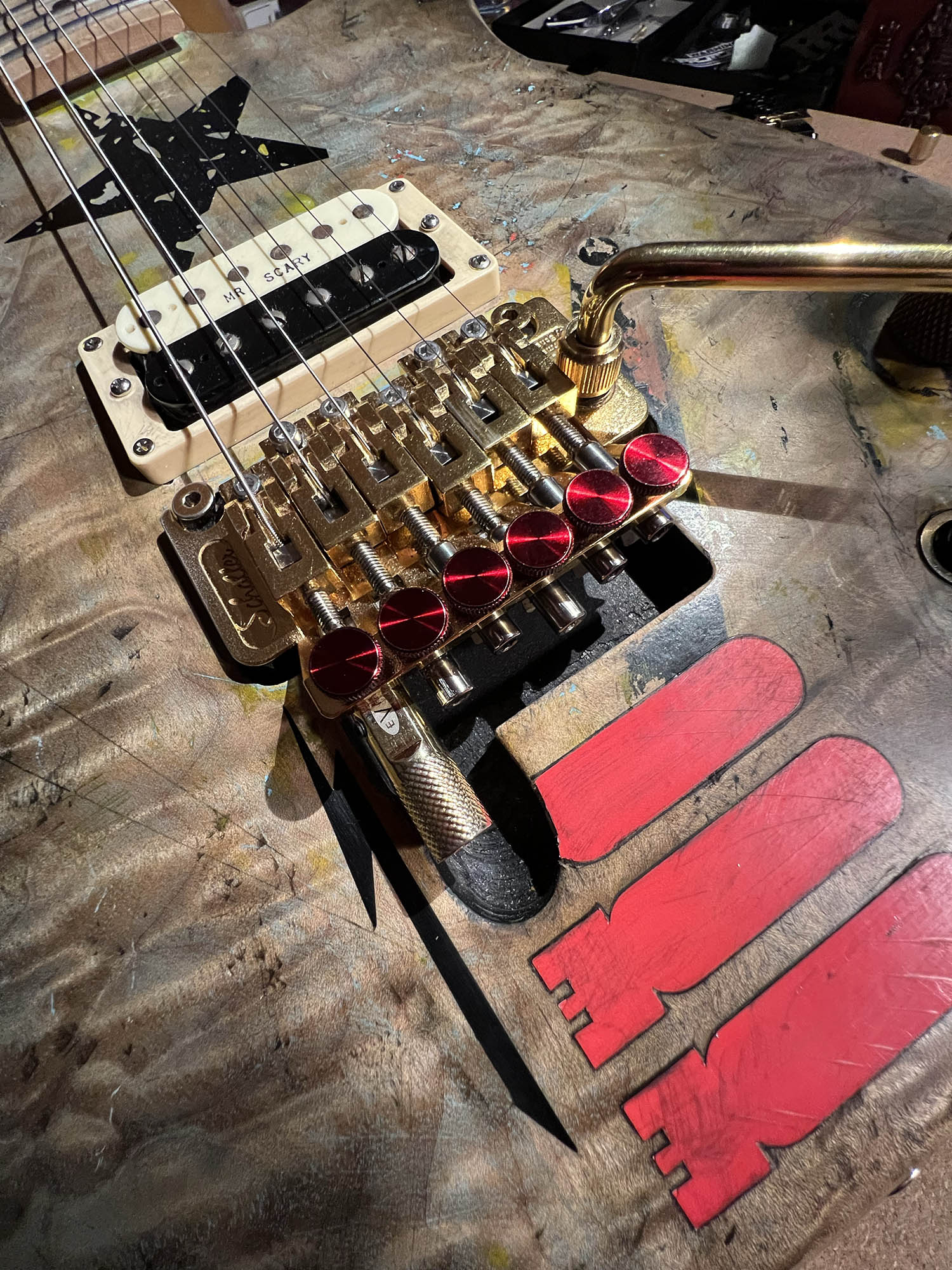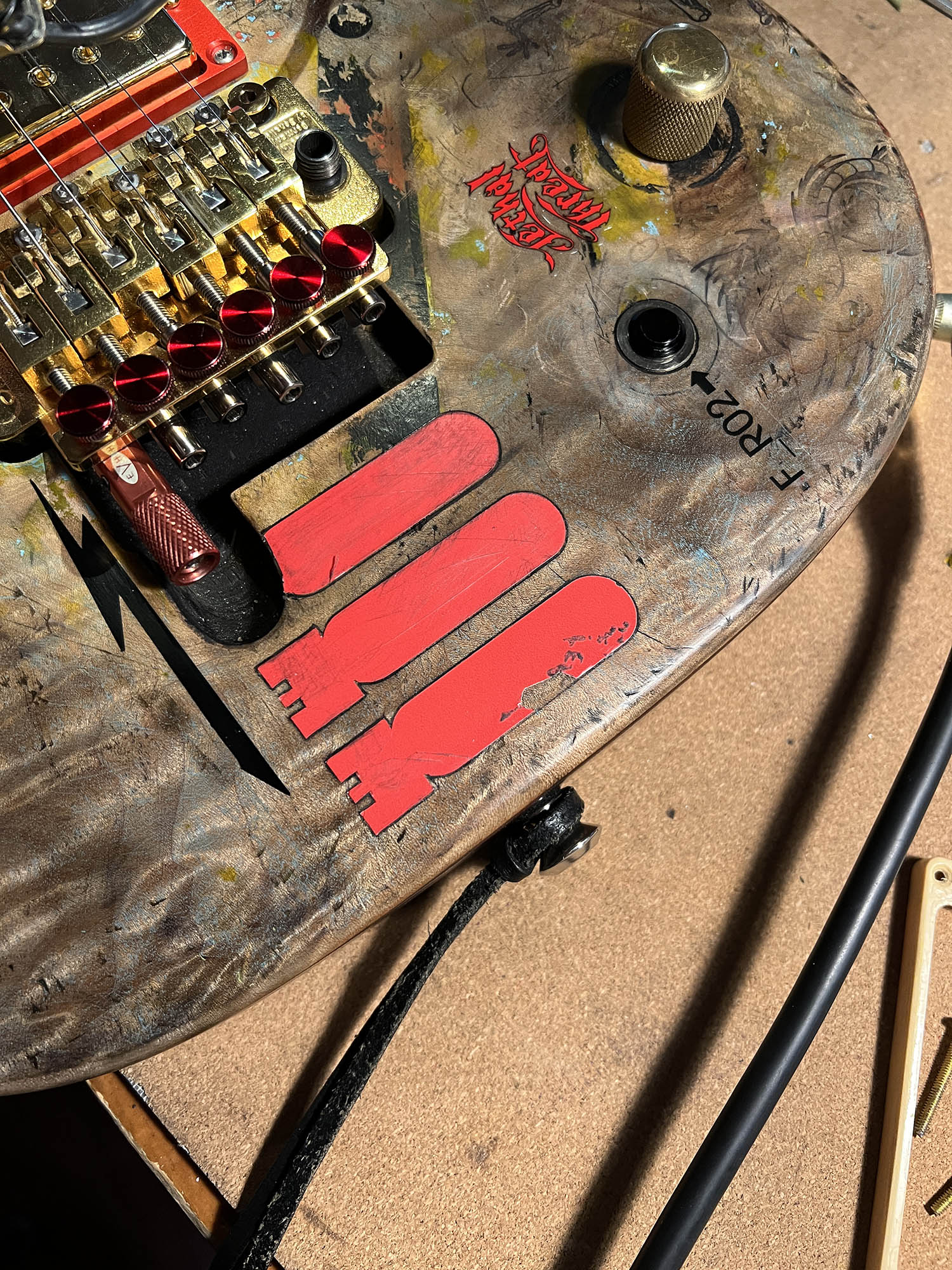 - Floyd Rose double-locking tremolo (gold-finished for that extra flash of menace)